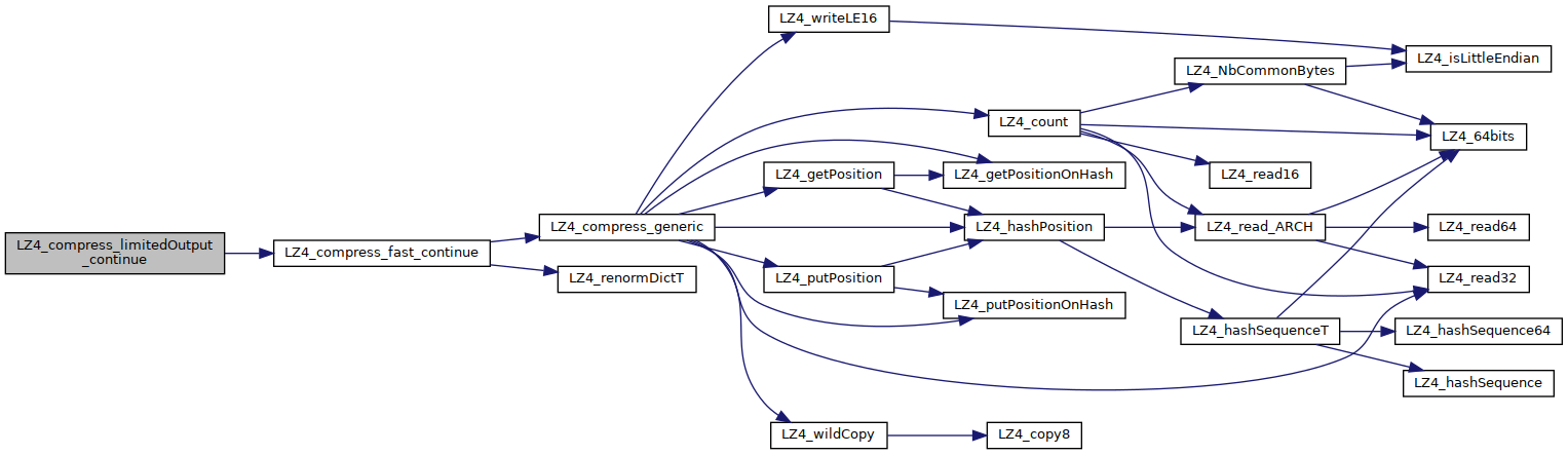 | int | LZ4_compress_limitedOutput_continue (LZ4_stream_t *LZ4_streamPtr, const char *source, char *dest, int inputSize, int maxOutputSize) |