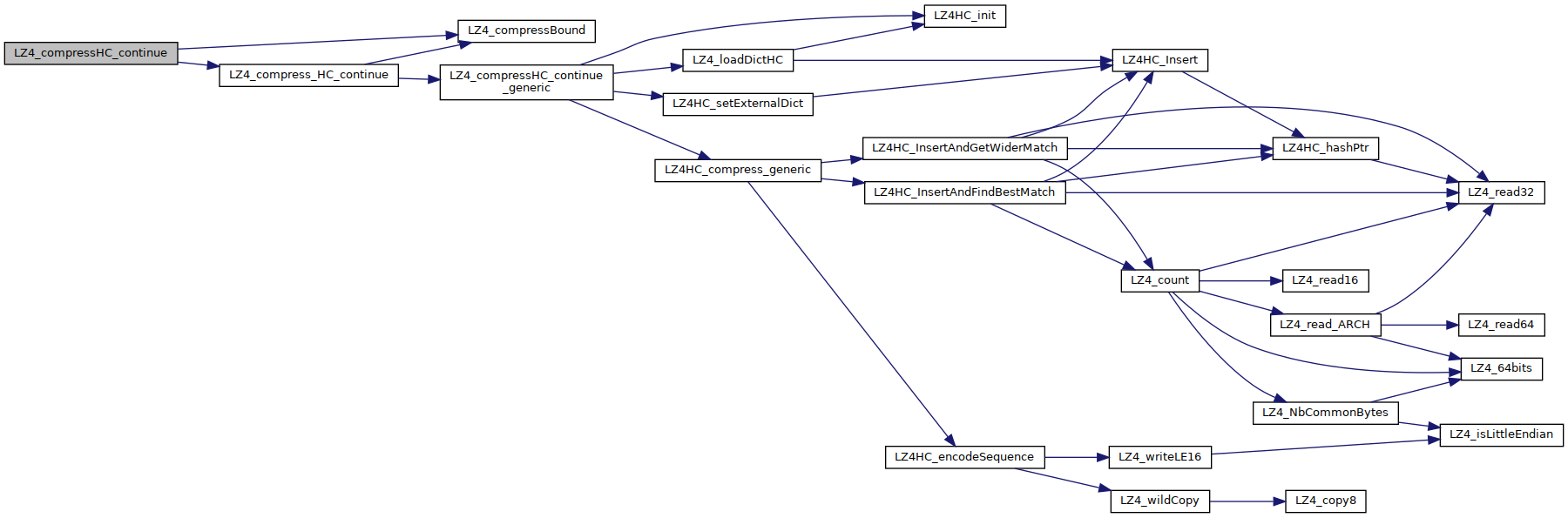 | int | LZ4_compress_HC_continue (LZ4_streamHC_t *streamHCPtr, const char *src, char *dst, int srcSize, int maxDstSize) |