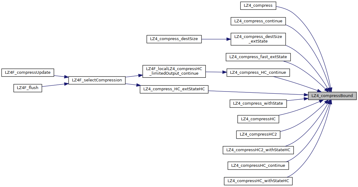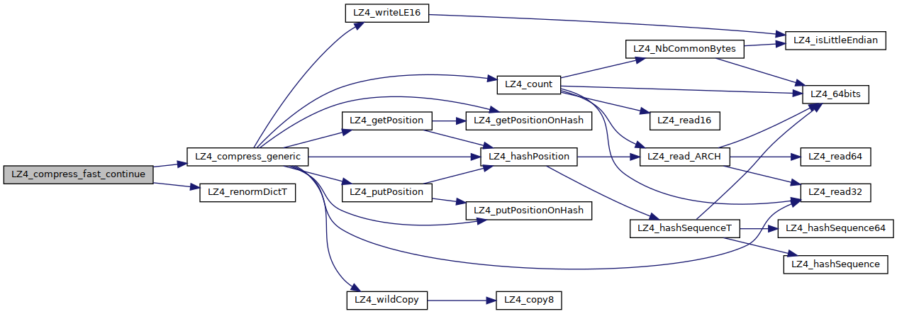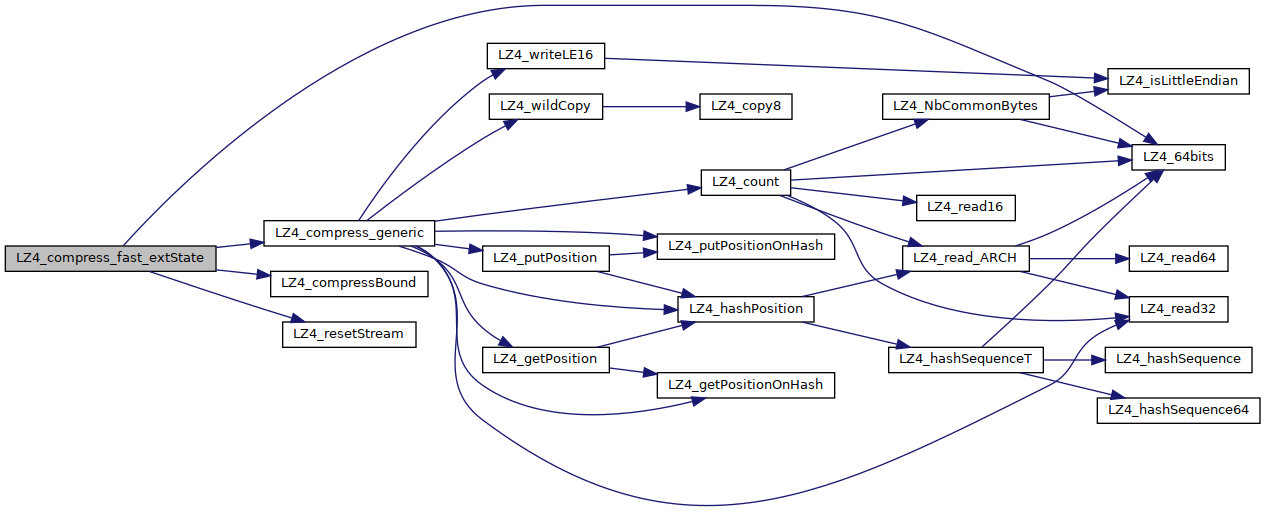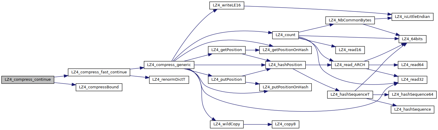 | int | LZ4_compress_fast_continue (LZ4_stream_t *LZ4_stream, const char *source, char *dest, int inputSize, int maxOutputSize, int acceleration) |