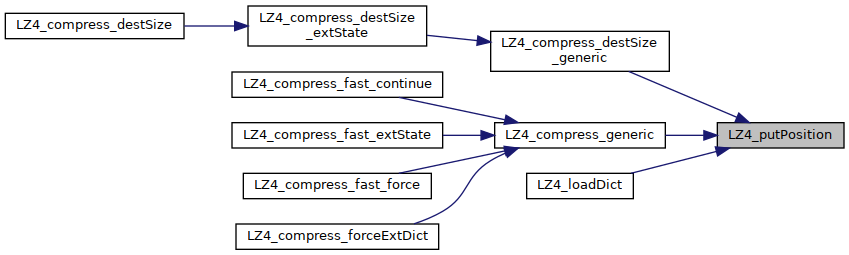 | static void | LZ4_putPosition (const BYTE *p, void *tableBase, tableType_t tableType, const BYTE *srcBase) |