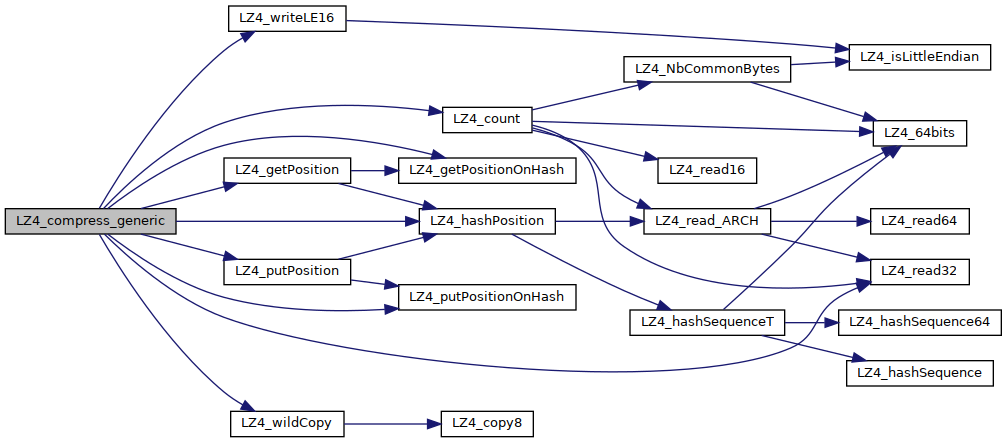 | FORCE_INLINE int | LZ4_compress_generic (void *const ctx, const char *const source, char *const dest, const int inputSize, const int maxOutputSize, const limitedOutput_directive outputLimited, const tableType_t tableType, const dict_directive dict, const dictIssue_directive dictIssue, const U32 acceleration) |