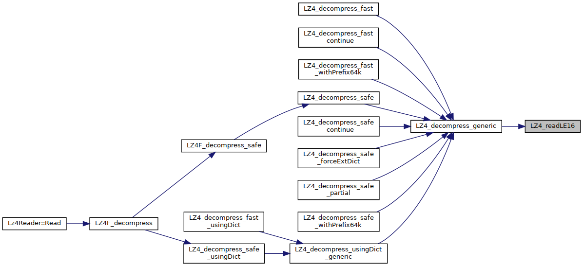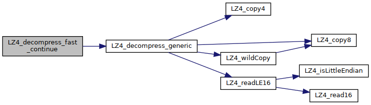 | int | LZ4_decompress_safe_continue (LZ4_streamDecode_t *LZ4_streamDecode, const char *source, char *dest, int compressedSize, int maxOutputSize) |
