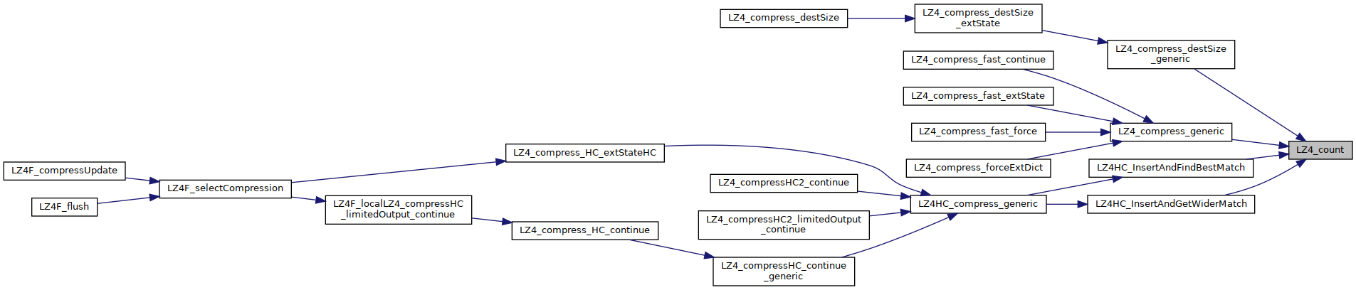 | static unsigned | LZ4_count (const BYTE *pIn, const BYTE *pMatch, const BYTE *pInLimit) |