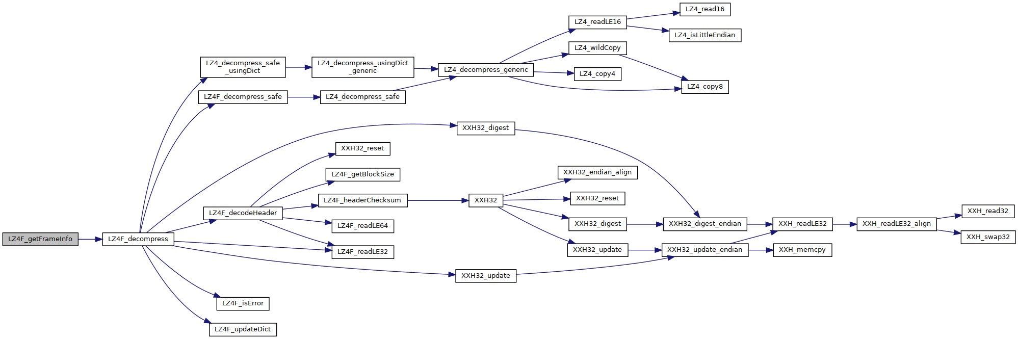 | LZ4F_errorCode_t | LZ4F_getFrameInfo (LZ4F_decompressionContext_t dCtx, LZ4F_frameInfo_t *frameInfoPtr, const void *srcBuffer, size_t *srcSizePtr) |