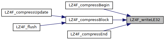 | static void | LZ4F_writeLE32 (BYTE *dstPtr, U32 value32) |