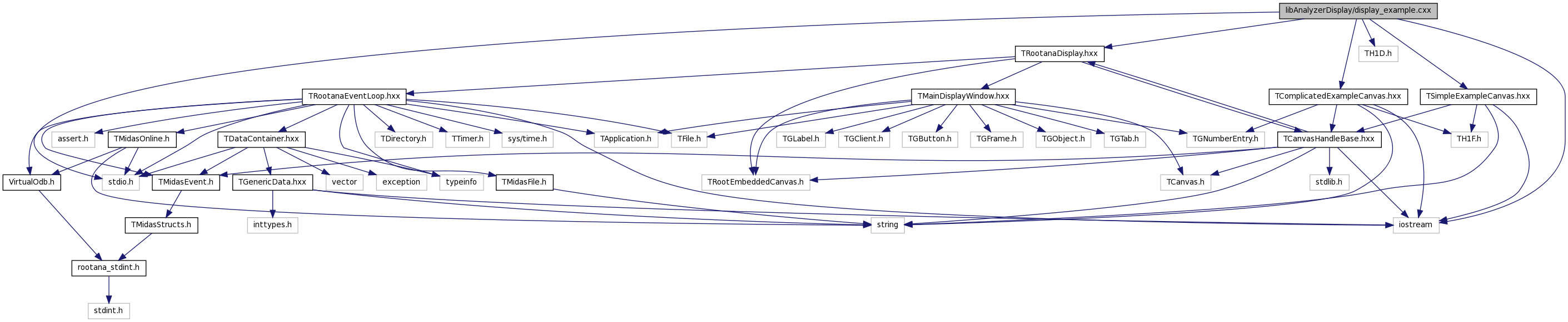 #include <stdio.h>#include <iostream>#include "TRootanaDisplay.hxx"#include "TH1D.h"#include "TSimpleExampleCanvas.hxx"#include "TComplicatedExampleCanvas.hxx"